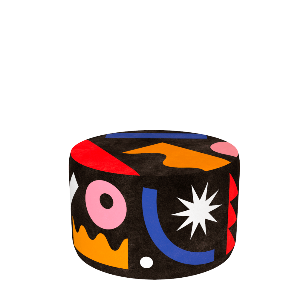 Pouf Oggian Landscape Black M DESIGN BY MARCO OGGIAN These pouf, designed by Marco Oggian are characterized by playful patterns all around. On top of them you will a find a “SIT HERE” sign encouraging people to try them and enjoy their comfort. Discover Pouf Oggian Landscape Black M.